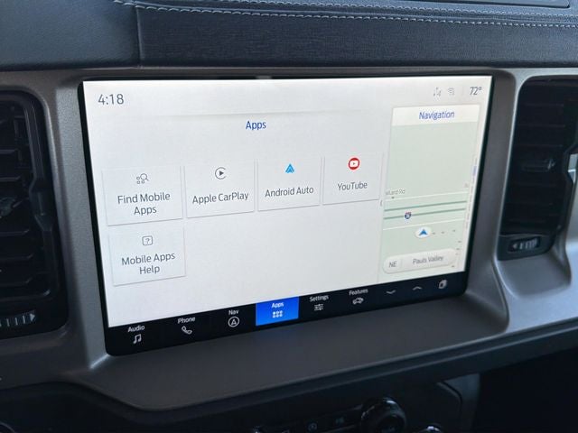 This Ford Bronco has many features and is well equipped including 405-338-4788, Clean CarFax, Active Parking Assist, Navigation Capable, Touchscreen Controls, Remote Vehicle Start, Automatic Headlights, Voice Recognition, Bluetooth® Hands-Free, Premium Package, Preferred Equipment Group, Center Console, Lifetime Window Tint Protection (Available).