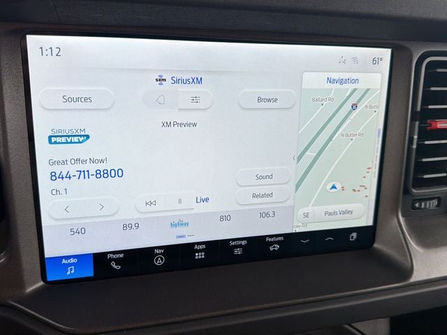 This Ford Bronco has many features and is well equipped including 405-338-4788, Clean CarFax, Active Parking Assist, Navigation Capable, Touchscreen Controls, Remote Vehicle Start, Automatic Headlights, Voice Recognition, Bluetooth® Hands-Free, Premium Package, Preferred Equipment Group, Center Console, Lifetime Window Tint Protection (Available), 12 Speakers, Active Cruise Control, Auto High-beam Headlights, Connected Navigation, Convertible HardTop, Equipment Group 374A Lux Package, Front dual zone A/C, Garage door transmitter, Gloss Black Sideview Mirror Skull Caps, Hard Top Sound Deadening Headliner, Heated front seats, Interior Carbon Fiber Pack, Radio: B&O Sound System by Bang & Olufsen, Raptor Black Appearance Package, Rear-Window Defroster & Washer, Shadow Black Painted Hard Top, SiriusXM w/360L, SYNC 4, Wheels: 17 Dark Carbonized Gray Alloy Painted.