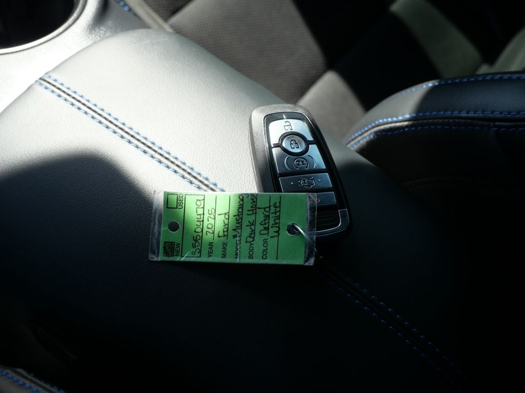 This Ford Mustang has many features and is well equipped including, 12 Speakers, 4-Wheel Disc Brakes, ABS brakes, Active Anti-Theft System, Adaptive suspension, Air Conditioning, Alloy wheels, Aluminum Foot Pedals, AM/FM radio: SiriusXM with 360L, AM/FM Stereo, Approach Detection, Auto High-beam Headlights, Auto-dimming Rear-View mirror, Automatic temperature control, B&O Sound System by Bang & Olufsen, Brake assist, Bumpers: body-color, Cloth/Vinyl Climate-Controlled Bucket Seats, Cloth/Vinyl Heated Bucket Seats, Compass, Custom Hood & Accent Painted Stripe, Dark Horse Handling Package, Delay-off headlights, Driver door bin, Driver Seat & Mirrors Memory, Driver vanity mirror, Dual front impact airbags, Dual front side impact airbags, Electronic Stability Control, Emergency communication system: 911 Assist, Equipment Group 700A Deluxe Package, Exterior Parking Camera Rear, Four wheel independent suspension, Front anti-roll bar, Front Bucket Seats, Front Center Armrest, Front dual zone A/C, Front reading lights, Front Towing Hooks, Fully automatic headlights, HD Radio, Heated front seats, Heated steering wheel, Illuminated entry, Knee airbag, Locking Center Console, Low tire pressure warning, Magnetic Damping System, Navigation system: Connected Navigation, Occupant sensing airbag, Outside temperature display, Overhead airbag, Overhead console, Panic alarm, Passenger door bin, Passenger vanity mirror, Performance Front Aero Splitter, Performance Rear Spoiler w/Gurney Flap, Power door mirrors, Power driver seat, Power passenger seat, Power steering, Power windows, Premium Floor Liners Front & Rear (w/Carpet Mats), Radio data system, Rain sensing wipers, Rear anti-roll bar, Rear Parking Sensors, Rear window defroster, RECARO Micro-Suede/Vinyl Bucket Seats, RECARO Sport Seats, Remote keyless entry, Security Package, SiriusXM w/360L, Speed control, Speed-sensing steering, Speed-Sensitive Wipers, Split folding rear seat, Spoiler, Sport steering wheel, Steering wheel mounted audio controls, SYNC 4, Tachometer, Telescoping steering wheel, Tilt steering wheel, Traction control, Trip computer, Universal Garage Door Opener (UGDO), Variably intermittent wipers, Voltmeter.