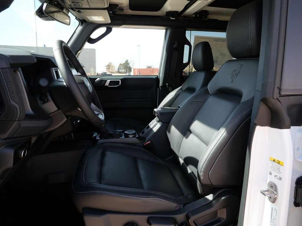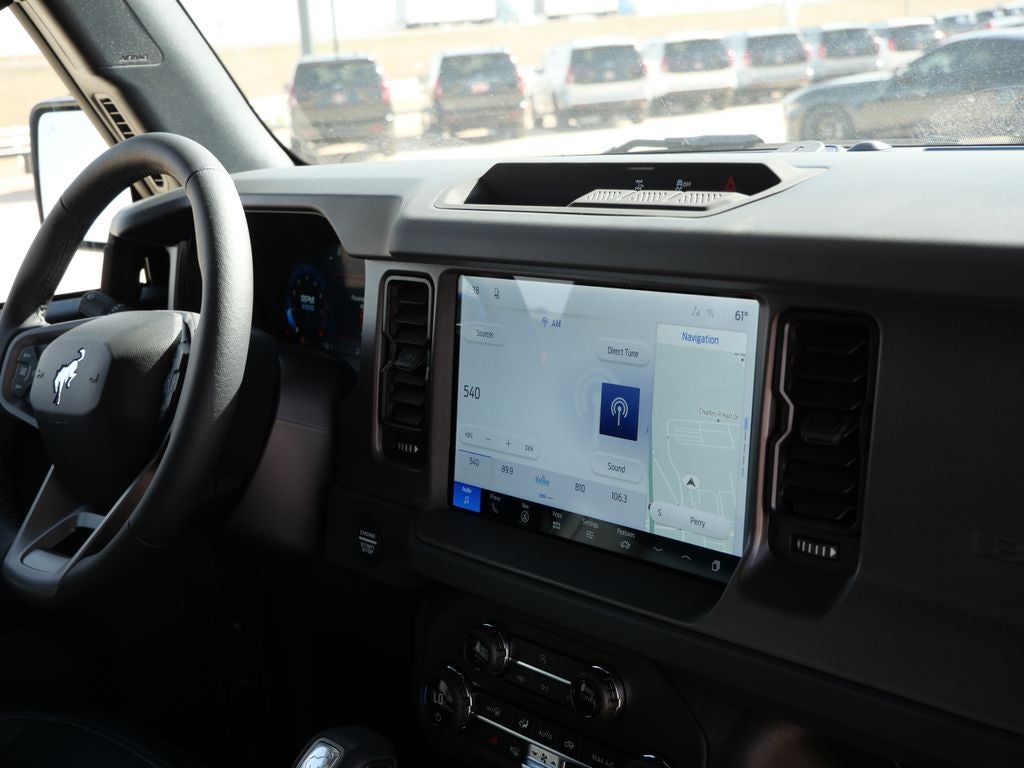 This Ford Bronco has many features and is well equipped including, 2-Door Intelligent Access with Lock/Unlock, AM/FM Stereo, Ambient Footwell Lighting, Black Appearance Package, Black Molded-in-Color Door Handles, Black Molded-in-Color Fender Flares, Black Molded-in-Color Sideview Mirror Caps, Black-Painted Molded-in-Color Grille, Cloth Bucket Seats, Connected Navigation, Driver and Front Passenger Illuminated Sliding Visor Vanity Mirrors, Dual Smart Charging USB Ports, Dual-Zone Electronic Automatic Temperature Control, Equipment Group 222A Mid Package, Ford Connectivity Package (1-Year Included), Front Row Heated Seats, Pro Power Onboard - 400W, Rear Parking Sensors, SiriusXM with 360L, SYNC 4, Wheels: 17 Carbonized Gray-Painted Aluminum.