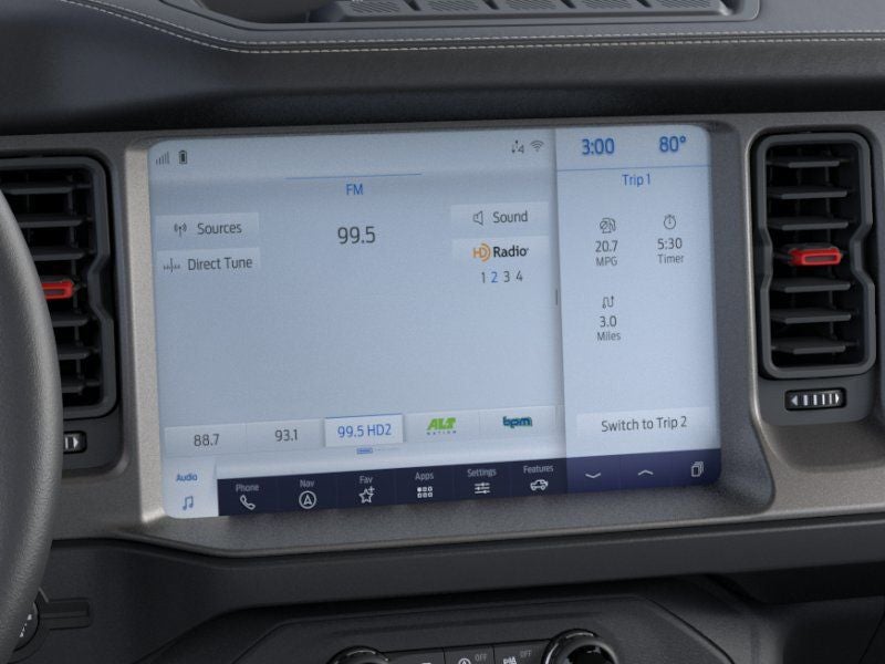 The exterior design is both rugged and refined, with a Wimbledon White-painted hard top, warm alloy grille, and high clearance fender flares that give the Bronco a bold, distinctive look. Step inside and you'll be surrounded by premium amenities, including a luxurious leather-trimmed interior, heated seats, and the renowned B&O sound system.
