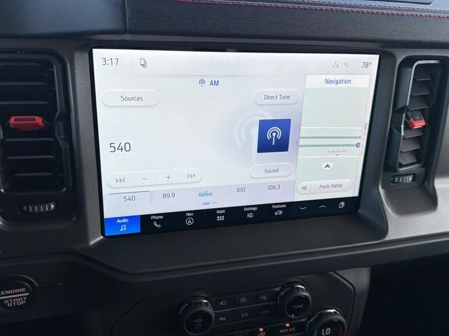 This Ford Bronco has many features and is well equipped including 405-338-4788, Clean CarFax, Active Parking Assist, Navigation Capable, Touchscreen Controls, Remote Vehicle Start, Automatic Headlights, Voice Recognition, Bluetooth® Hands-Free, Premium Package, Preferred Equipment Group, Center Console, Lifetime Window Tint Protection (Available), Active Cruise Control, Auto High-beam Headlights, Equipment Group 374A Lux Package, Marine Grade Vinyl Bucket Seats, Radio: B&O Sound System by Bang and Olufsen, Wheels: 17 Black High Gloss-Painted Aluminum.