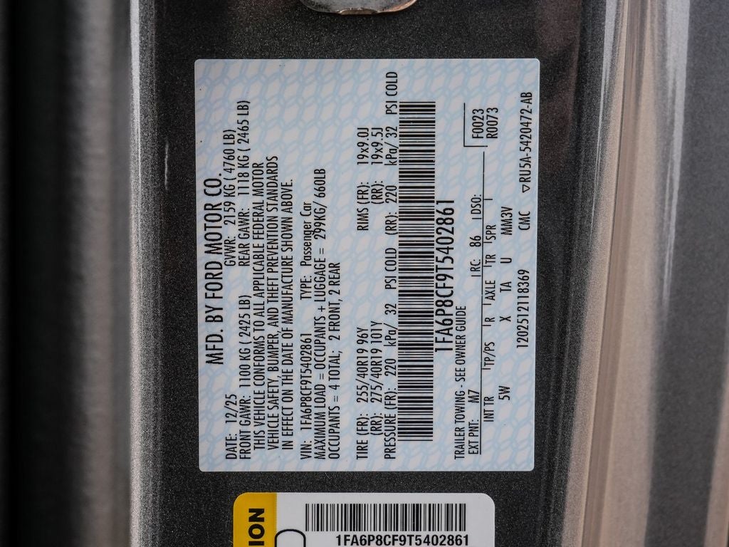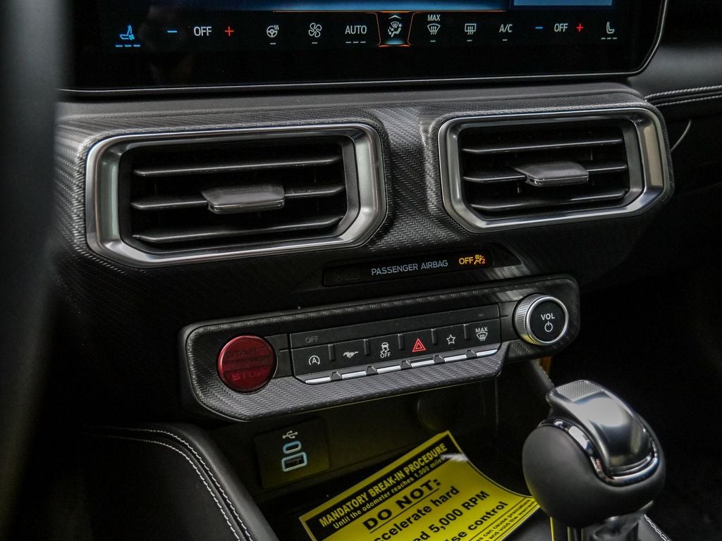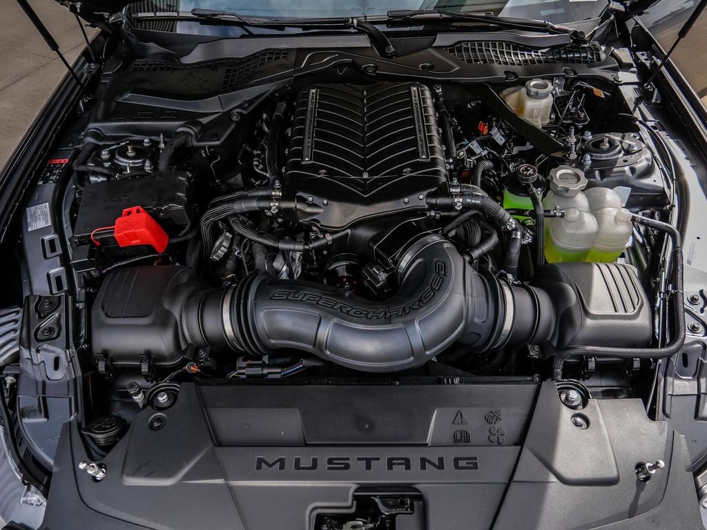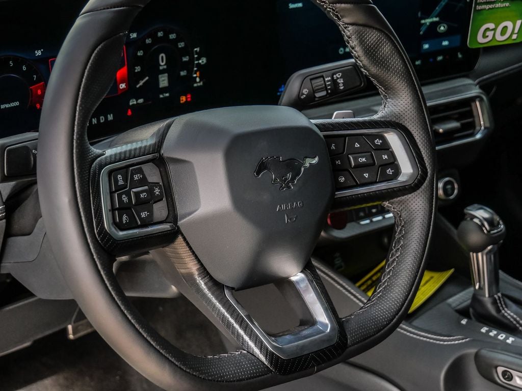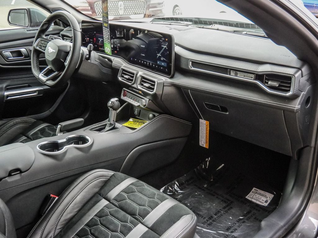 ABS brakes, Accent Stitched Center Console Lid, Alloy wheels, Aluminum Foot Pedals, AM/FM Stereo, Black Painted Strut-Tower Brace, Brembo Brake System with Performance Linings, Compass, Driver Seat Memory with 3 Settings, Electric Hand-Operated Parking Brake (drift Brake), Electronic Stability Control, Equipment Group 401A High Package, Ford Co-Pilot360 Assist+, Front dual zone A/C, Front Towing Hooks, GT Performance Package, Heavy-Duty Front Springs, Illuminated entry, Leather-Trimmed Bucket Seats with Color Accents, Low tire pressure warning, Magnesium Framed Panoramic Curved Display, One-Year Connected Navigation, Painted High Gloss Black/Carbon Black Grille, Perimeter Alarm, Pre-Collision Assist with Automatic Emergency Braking, Remote keyless entry, SYNC 4, Traction control, Unique Chassis Tuning, Unique Stability Control, Upsized Rear Sway Bar, Wheels: 19 x 8.5 Shadow Silver-Painted Aluminum.