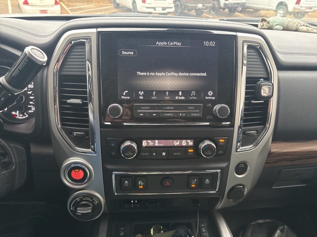 Recent Arrival! 2020 Brilliant Silver Metallic Nissan Titan SL 4WD 9-Speed Automatic 5.6L V8 DOHC 32V LEV3-ULEV70 400hp This Nissan Titan has many features and is well equipped including, Lifetime Engine Guarantee, Lifetime Oil Changes, Window Tint, **4-MOTION/AWD**, Accident Free Carfax, Bluetooth®, Non-Smoker, Great Fuel Economy, Heated Mirrors, Heated / Cooled Seats, Keyless Entry, Leather, Local Trade, Navigation / GPS, Rear Backup Camera, Rear Backup Sensors, Remote Start, **SIRIUS/XM SATELLITE RADIO**, Tow Package, All Wheel Drive / 4x4, USB, Bluetooth® Hands Free, 12 Speakers, 3.692 Axle Ratio, 4-Wheel Disc Brakes, ABS brakes, Air Conditioning, Alloy wheels, AM/FM radio: SiriusXM, Auto Dimming Tow Mirror, Auto High-beam Headlights, Auto tilt-away steering wheel, Auto-dimming door mirrors, Auto-dimming Rear-View mirror, Automatic temperature control, Black Front Tow Hooks, Blind Spot Warning, Brake assist, Bumpers: chrome, Carpet Floor Mats (L95), Chrome wheels, Compass, Delay-off headlights, Driver door bin, Driver vanity mirror, Dual front impact airbags, Dual front side impact airbags, Dual Panel Panoramic Moonroof w/Tilt & Slide, Electronic Stability Control, Emergency communication system: NissanConnect Services, Front anti-roll bar, Front Bucket Seats, Front Center Armrest, Front dual zone A/C, Front fog lights, Front reading lights, Front wheel independent suspension, Fully automatic headlights, Garage door transmitter: HomeLink, Heated door mirrors, Heated Front Captain's Seats, Heated front seats, Heated steering wheel, Illuminated entry, Knee airbag, Leather steering wheel, Leather-Appointed Seat Trim, Low tire pressure warning, Memory seat, Moonroof Package, Navigation system: NissanConnect Navigation, NissanConnect featuring Apple CarPlay and Android Auto, NissanConnect Services Powered By SiriusXM, Occupant sensing airbag, Outside temperature display, Overhead airbag, Overhead console, Panic alarm, Passenger door bin, Passenger vanity mirror, Power door mirrors, Power driver seat, Power passenger seat, Power steering, Power windows, Protection Package 1, Radio data system, Radio: NissanConnect w/Navigation, Rain sensing wipers, Rear anti-roll bar, Rear seat center armrest, Rear step bumper, Rear Under Seat Storage, Rear window defroster, Remote keyless entry, Running Boards w/Chrome Accents, Security system, SL Towing Package, Speed control, Speed-sensing steering, Speed-Sensitive Wipers, Split folding rear seat, Steering wheel memory, Steering wheel mounted audio controls, Tachometer, Telescoping steering wheel, Tilt steering wheel, Titan Mud Flaps, Traction control, Trailer Brake Controller, Trailer Light Check Function On Key Fob, Trip computer, Turn signal indicator mirrors, Variably intermittent wipers, Voltmeter, Wheels: 20 x 8 Chrome.