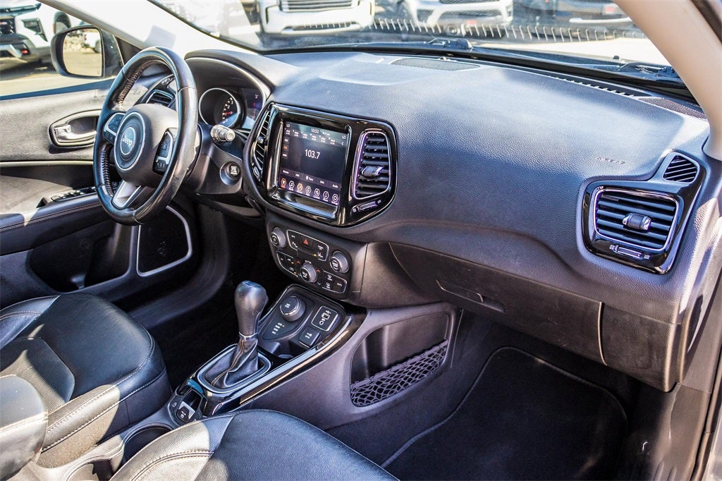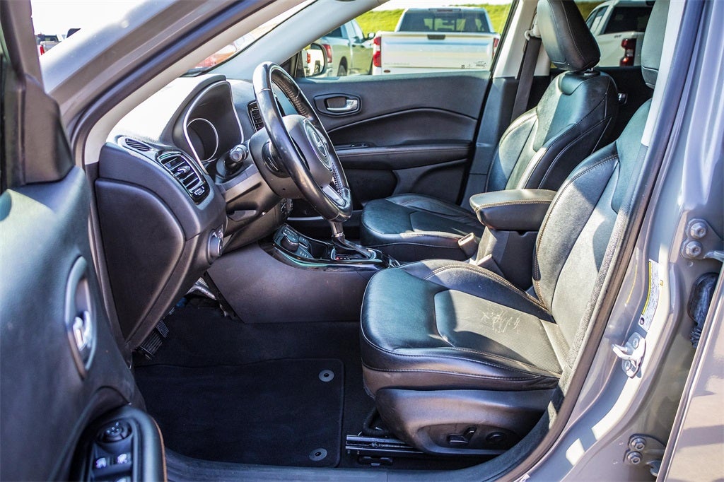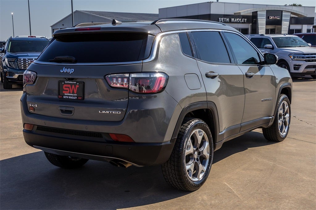 2021 Sting-Gray Clearcoat Jeep Compass Limited 4WD 9-Speed 948TE Automatic 2.4L I4 This Jeep Compass has many features and is well equipped including, Lifetime Engine Guarantee, Lifetime Oil Changes, Bluetooth®, Keyless Entry, Leather, Rear Backup Camera, Remote Start, **SIRIUS/XM SATELLITE RADIO**, All Wheel Drive / 4x4, USB, Bluetooth® Hands Free, 3.73 Axle Ratio, 4-Wheel Disc Brakes, 6 Speakers, ABS brakes, Air Conditioning, Alloy wheels, AM/FM radio: SiriusXM, Anti-whiplash front head restraints, Apple CarPlay/Android Auto, Auto-dimming Rear-View mirror, Automatic temperature control, Brake assist, Bumpers: body-color, Compass, Delay-off headlights, Driver door bin, Driver vanity mirror, Dual front impact airbags, Dual front side impact airbags, Electronic Stability Control, Four wheel independent suspension, Front anti-roll bar, Front Bucket Seats, Front Center Armrest w/Storage, Front dual zone A/C, Front fog lights, Front License Plate Bracket, Front reading lights, Fully automatic headlights, Heated door mirrors, Heated front seats, Heated steering wheel, Illuminated entry, Knee airbag, Leather Shift Knob, Leather Trimmed Bucket Seats, Low tire pressure warning, Manufacturer's Statement of Origin, Occupant sensing airbag, Outside temperature display, Overhead airbag, Overhead console, Panic alarm, ParkView Rear Back-Up Camera, Passenger door bin, Passenger vanity mirror, Power door mirrors, Power driver seat, Power steering, Power windows, Quick Order Package 2GG, Radio: Uconnect 4 w/8.4 Display, Rain sensing wipers, Rear anti-roll bar, Rear seat center armrest, Rear window defroster, Rear window wiper, Remote keyless entry, Roof rack: rails only, Security system, Speed control, Split folding rear seat, Spoiler, Steering wheel mounted audio controls, Tachometer, Telescoping steering wheel, Tilt steering wheel, Traction control, Trip computer, Turn signal indicator mirrors, Variably intermittent wipers, Wheels: 18 x 7.0 Polished/Gray Pockets Aluminum.