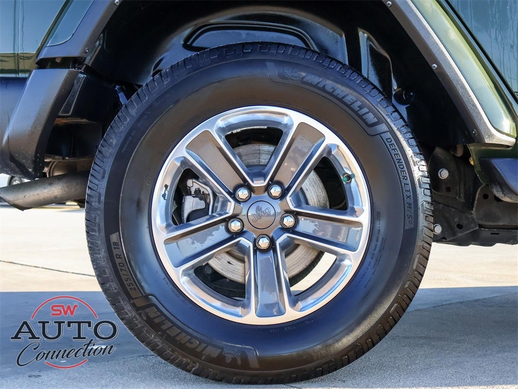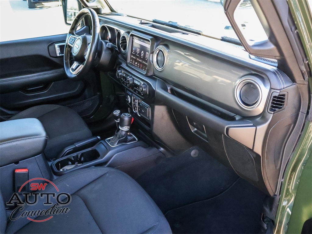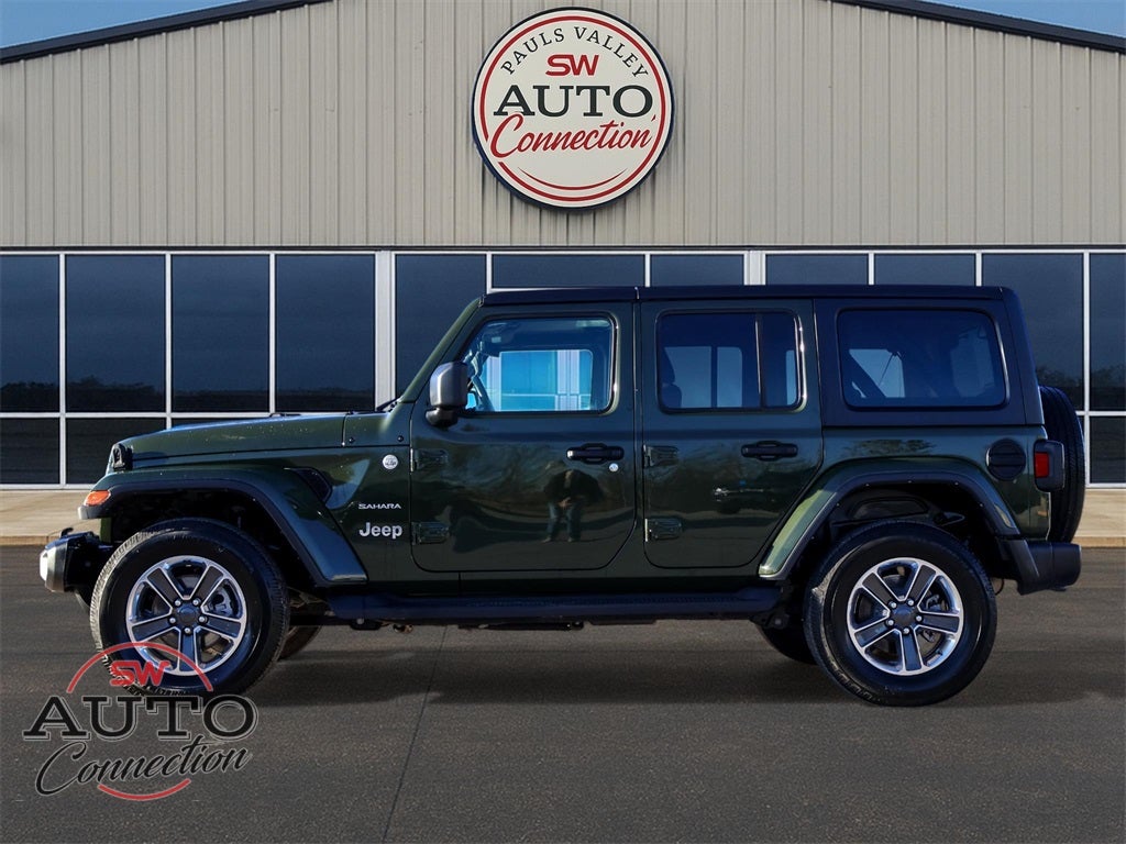 2022 Sarge Green Clearcoat Jeep Wrangler Unlimited Sahara 4WD 3.6L V6 24V VVT 8-Speed Automatic This Jeep Wrangler has many features and is well equipped including, 110 MPH Vehicle Max Speed Calibration, 3.45 Rear Axle Ratio, 4-Wheel Disc Brakes, 9 Speakers, ABS brakes, Air Conditioning, AM/FM radio: SiriusXM, Apple CarPlay/Android Auto, Auto-dimming Rear-View mirror, Automatic temperature control, Aux Battery, Black 3-Piece Hard Top, Brake assist, Cloth Low-Back Bucket Seats, Compass, Corning Gorilla Glass, Delay-off headlights, Driver door bin, Driver vanity mirror, Dual front impact airbags, Dual front side impact airbags, Electronic Stability Control, Emergency communication system: SiriusXM Guardian, Engine Oil Cooler, Freedom Panel Storage Bag, Front anti-roll bar, Front Bucket Seats, Front Center Armrest w/Storage, Front dual zone A/C, Front fog lights, Front License Plate Bracket, Front reading lights, Fully automatic headlights, Garage door transmitter, Heated door mirrors, Heavy Duty Suspension w/Gas Shocks, Illuminated entry, Integrated roll-over protection, Leather steering wheel, Low tire pressure warning, Manufacturer's Statement of Origin, Navigation System, No Soft Top, Non-Lock Fuel Cap w/o Discriminator, Occupant sensing airbag, Outside temperature display, Panic alarm, ParkView Rear Back-Up Camera, Passenger door bin, Passenger vanity mirror, Power door mirrors, Power steering, Power windows, Quick Order Package 25G, Radio: Uconnect 4C Nav w/8.4 Display, Rear anti-roll bar, Rear reading lights, Rear Window Defroster, Rear Window Wiper/Washer, Remote keyless entry, Security system, Speed control, Split folding rear seat, Steering wheel mounted audio controls, Stop-Start Dual Battery System, Tachometer, Telescoping steering wheel, Tilt steering wheel, Traction control, Trip computer, Variably intermittent wipers, Voltmeter, Wheels: 18 x 7.5 Polished w/Gray Spokes.