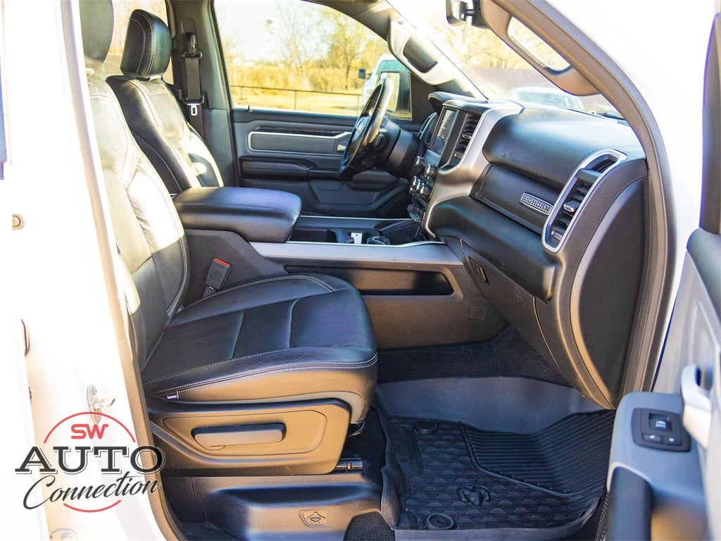 2022 Bright White Clearcoat Ram 1500 Big Horn 4WD HEMI 5.7L V8 Multi Displacement VVT 8-Speed Automatic This Ram 1500 has many features and is well equipped including, 115V Auxiliary Power Outlet, 115V Auxiliary Rear Power Outlet, 2nd Row In Floor Storage Bins, 3 Rear Seat Head Restraints, 3.21 Rear Axle Ratio, 33 Gallon Fuel Tank, 4 Way Front Headrests, 4-Wheel Disc Brakes, 400W Inverter, 48V Belt Starter Generator, 4G LTE Wi-Fi Hot Spot, 8.4 Touchscreen Display, ABS brakes, Air Conditioning ATC w/Dual Zone Control, All Plant-Installed Decals, AM/FM radio, Apple CarPlay, Auto-Dimming Exterior Driver Mirror, Auto-Dimming Rear-View Mirror, Big Horn Badge, Big Horn Level B Equipment Group (DISC), Black Exterior Mirrors, Black Premium Power Mirrors (GUL), Bluetooth® Handsfree Phone & Audio, Brake assist, Bumpers: chrome, Class IV Receiver Hitch, Cloth Bench Seat, Cluster 7.0 TFT Color Display, Compass, Connectivity - US/Canada, Convex Wide-Angle Mirror Insert, Delay-off headlights, Driver door bin, Dual front impact airbags, Dual front side impact airbags, E-Locker Rear Axle, Electronic Stability Control, Emergency communication system: SiriusXM Guardian, Exterior Mirrors Courtesy Lamps, Exterior Mirrors w/Supplemental Signals, Foam Bottle Insert (Door Trim Panel), For More Info, Call 800-643-2112, Front anti-roll bar, Front Center Armrest w/Storage, Front Extra HD Shock Absorbers, Front fog lights, Front License Plate Bracket, Front reading lights, Front Seat Back Map Pockets, Front wheel independent suspension, Fully automatic headlights, Global Telematics Box Module (TBM), Glove Box Lamp, Google Android Auto, GPS Antenna Input, Heated door mirrors, Heated Front Seats, Heated Steering Wheel, Heavy-Duty Engine Cooling, Hill Descent Control, Illuminated entry, Integrated Center Stack Radio, Integrated Voice Command w/Bluetooth®, Leather steering wheel, Low tire pressure warning, Media Hub w/2 Charge Only USBs, MOPAR Front & Rear Rubber Floor Mats, Occupant sensing airbag, Off Road Decals, Off Road Group, Outside temperature display, Overhead airbag, Overhead console, Panic alarm, ParkSense Front/Rear Park Assist w/Stop, ParkView Rear Back-Up Camera, Passenger door bin, Passenger vanity mirror, Power 2-Way Driver Lumbar Adjust, Power 8-Way Driver Seat, Power Adjustable Pedals, Power door mirrors, Power steering, Power windows, Quick Order Package 25Z Big Horn, Radio: Uconnect 5 W w/8.4 Display, Raised Ride Height, Rear 60/40 Folding Seat, Rear anti-roll bar, Rear Dome w/On/Off Switch Lamp, Rear Extra HD Shock Absorbers, Rear Power Sliding Window, Rear seat center armrest, Rear step bumper, Rear Underseat Compartment Storage, Rear Underseat Compartment Storage (DISC), Rear Wheelhouse Liners, Rear Window Defroster, Remote keyless entry, Remote Start System, Security Alarm, SiriusXM Radio Service, SiriusXM Satellite Radio, Speed control, Split folding rear seat, Steering wheel mounted audio controls, Sun Visors w/Illuminated Vanity Mirrors, Tachometer, Telescoping steering wheel, Tilt steering wheel, Tow Hooks, Traction control, Trailer Brake Control, Trip computer, Universal Garage Door Opener, USB Host Flip, Variably intermittent wipers, Voltmeter, Wheels: 18 x 8 Cast-Aluminum Painted.