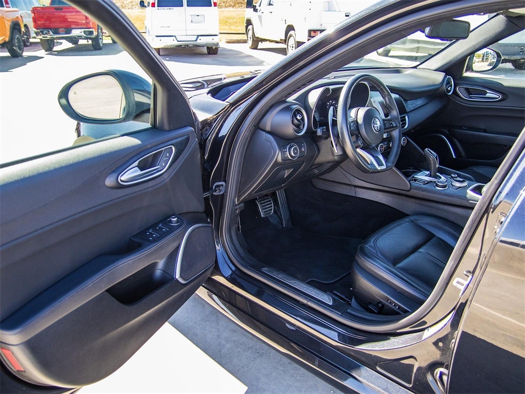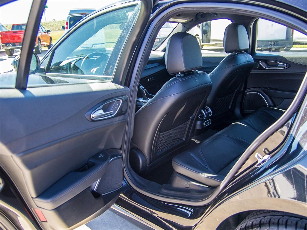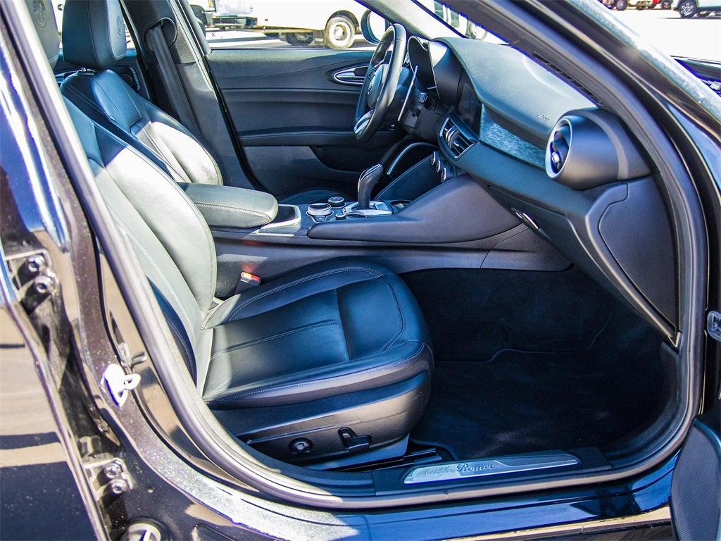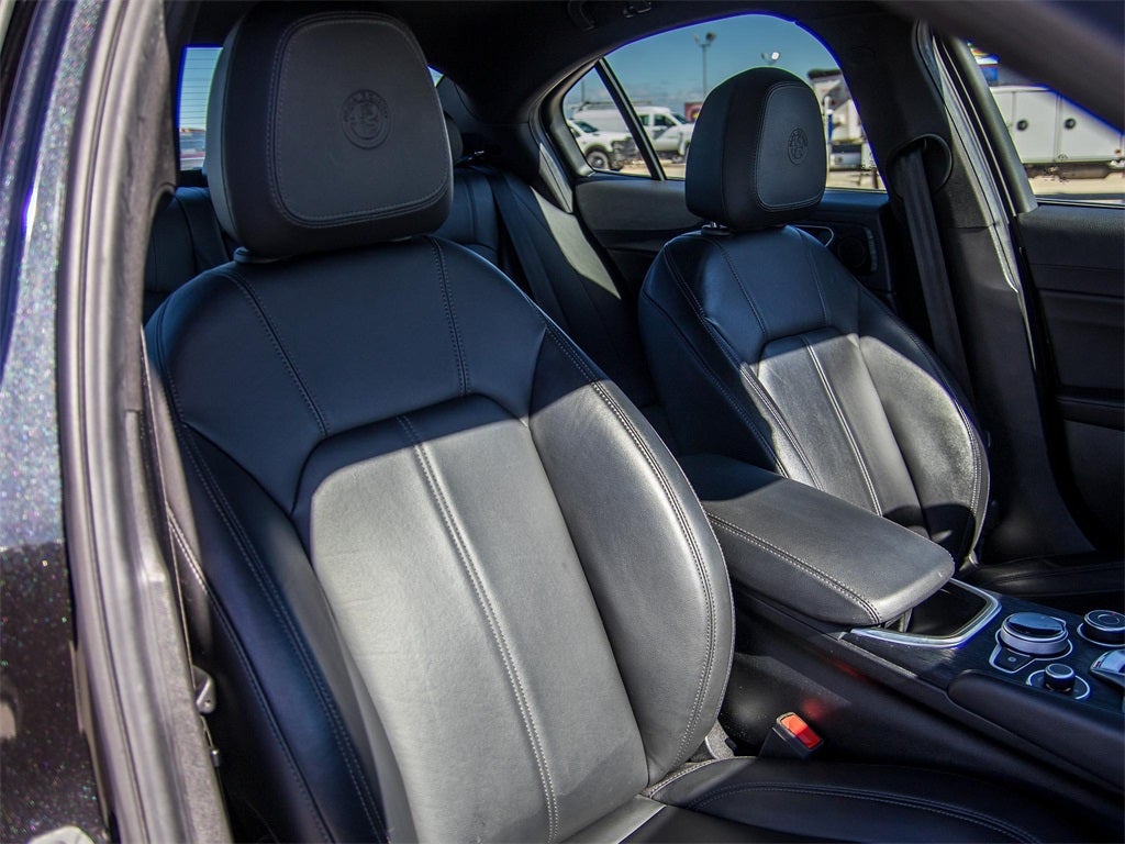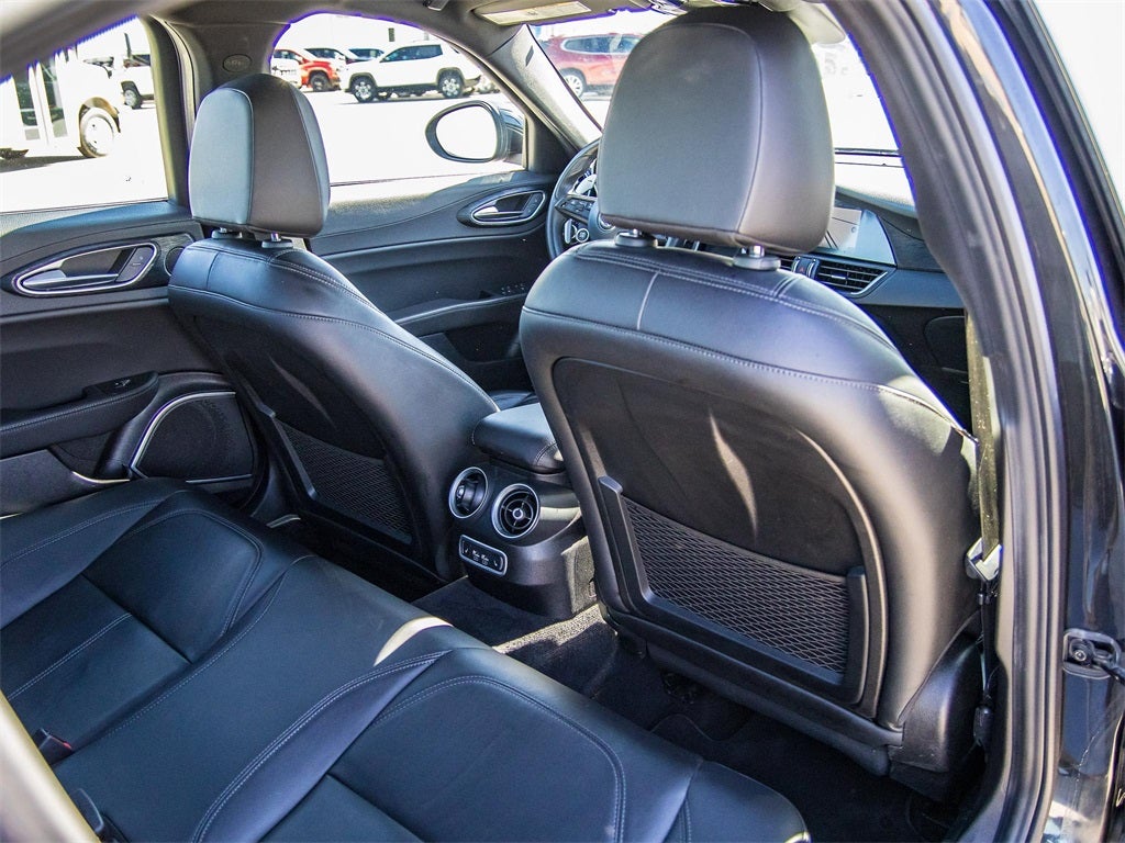 2023 Vulcano Black Metallic Alfa Romeo Giulia Sprint AWD 8-Speed Automatic I4 Bluetooth®, Great Fuel Economy, Heated Mirrors, Keyless Entry, Leather, Rear Backup Camera, All Wheel Drive / 4x4, 4-Wheel Disc Brakes, 8 Speakers, ABS brakes, Air Conditioning, Alloy wheels, AM/FM radio: SiriusXM, Apple CarPlay/Android Auto, Auto High-beam Headlights, Auto-dimming door mirrors, Auto-dimming Rear-View mirror, Automatic temperature control, Brake assist, Bumpers: body-color, Compass, Delay-off headlights, Driver door bin, Driver vanity mirror, Dual front impact airbags, Dual front side impact airbags, Electronic Stability Control, Exterior Parking Camera Rear, Four wheel independent suspension, Front anti-roll bar, Front Bucket Seats, Front Center Armrest, Front dual zone A/C, Front reading lights, Fully automatic headlights, Garage door transmitter, Heated door mirrors, Heated front seats, Heated rear seats, Heated steering wheel, High intensity discharge headlights: Bi-Xenon, Illuminated entry, Knee airbag, Leather Seats, Leather Shift Knob, Leather steering wheel, Low tire pressure warning, Memory seat, Navigation System, Occupant sensing airbag, Outside temperature display, Overhead airbag, Overhead console, Panic alarm, Passenger door bin, Passenger vanity mirror, Power door mirrors, Power driver seat, Power passenger seat, Power steering, Power windows, Radio data system, Radio: AM/FM/HD 8.8 w/Navigation, Rain sensing wipers, Rear anti-roll bar, Rear fog lights, Rear reading lights, Rear seat center armrest, Rear window defroster, Remote keyless entry, Security system, Speed control, Speed-sensing steering, Speed-Sensitive Wipers, Split folding rear seat, Sport steering wheel, Steering wheel mounted audio controls, Tachometer, Telescoping steering wheel, Tilt steering wheel, Traction control, Trip computer, Turn signal indicator mirrors, Variably intermittent wipers, Wheels: 17 x 7.5 Bright 15-Spoke Aluminum.