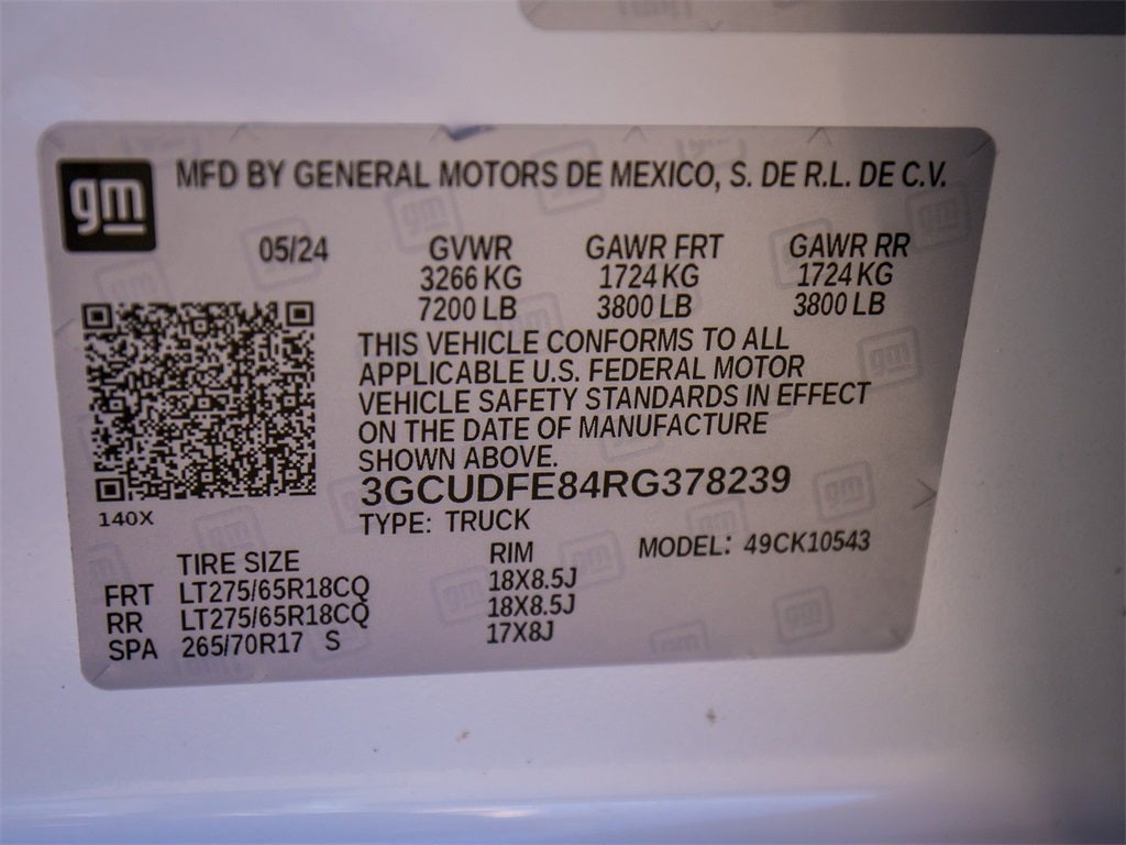 Priced below KBB Fair Purchase Price! 2024 Iridescent Pearl Tricoat Chevrolet Silverado 1500 LT Trail Boss Z71 4WD 10-Speed Automatic, 4WD, Jet Black w/Leather-Appointed Front Seat Trim, 10-Way Power Driver Seat w/Lumbar, 12.3 Multicolor Reconfigurable Digital Display, 120-Volt Bed Mounted Power Outlet, 120-Volt Interior Power Outlet, 2 USB Data Ports, 220 Amp Alternator, 4-Wheel Disc Brakes, 40/20/40 Front Split-Bench Seat, 6 Speakers, 6-Speaker Audio System, ABS brakes, Adaptive Cruise Control, Air Conditioning, All-Weather Floor Liner (LPO) (AAK), Alloy wheels, AM/FM radio: SiriusXM with 360L, Auto High-beam Headlights, Auto-Locking Rear Differential, Automatic Emergency Braking, Automatic temperature control, Bluetooth® For Phone, Brake assist, Chevrolet Connected Access Capable, Cloth Seat Trim, Color-Keyed Carpeting Floor Covering, Compass, Convenience Package, Convenience Package II, Deep-Tinted Glass, Delay-off headlights, Driver door bin, Driver vanity mirror, Dual Exhaust w/Polished Outlets, Dual front impact airbags, Dual front side impact airbags, Dual Rear USB Ports (Charge Only), Dual-Zone Automatic Climate Control, Electric Rear-Window Defogger, Electrical Steering Column Lock, Electronic Cruise Control, Electronic Stability Control, Electronic Transmission Range Selector Shifter, Engine Block Heater, EZ Lift Power Lock & Release Tailgate, Floor Mounted Center Console, Following Distance Indicator, Forward Collision Alert, Front anti-roll bar, Front Bucket Seats, Front Center Armrest w/Storage, Front dual zone A/C, Front fog lights, Front LED Fog Lamps, Front License Plate Kit, Front Pedestrian Braking, Front reading lights, Front wheel independent suspension, Fully automatic headlights, HD Rear Vision Camera, Heated door mirrors, Heated Driver & Front Outboard Passenger Seats, Heated front seats, Heated Power-Adjustable Outside Mirrors, Heated Steering Wheel, Heated steering wheel, Heavy-Duty Air Filter, High Gloss Black Mirror Caps, Hill Descent Control, Hitch Guidance, Hitch Guidance w/Hitch View, Illuminated entry, In-Vehicle Trailering System App, Inside Rear-View Mirror w/Tilt, Integrated Trailer Brake Controller, IntelliBeam Automatic High Beam On/Off, Keyless Open & Start, Lane Keep Assist w/Lane Departure Warning, Leather Package, Leather-Appointed Front Seat Trim, LED Cargo Area Lighting, Low tire pressure warning, Multi-Flex Tailgate, Occupant sensing airbag, OnStar & Chevrolet Connected Services Capable, Outside temperature display, Overhead airbag, Overhead console, Panic alarm, Passenger door bin, Passenger vanity mirror, Performance Red Recovery Hooks, Power door mirrors, Power driver seat, Power Front Windows w/Driver Express Up/Down, Power Front Windows w/Passenger Express Down, Power Rear Windows w/Express Down, Power Sliding Rear Window w/Rear Defogger, Power steering, Power windows, Preferred Equipment Group 2LT, Premium audio system: Chevrolet Infotainment 3 Premium, Premium Bose 7-Speaker Sound System, Radio data system, Radio: Chevrolet Infotainment 3 Premium System, Rear 60/40 Folding Bench Seat (Folds Up), Rear reading lights, Rear step bumper, Rear window defroster, Remote keyless entry, Remote Vehicle Starter System, Security system, Single Outlet Exhaust, SiriusXM w/360L, Speed control, Speed-sensing steering, Split folding rear seat, Standard Tailgate, Steering Wheel Audio Controls, Steering wheel mounted audio controls, Suspension Package, Tachometer, Telescoping steering wheel, Theft Deterrent System (Unauthorized Entry), Tilt steering wheel, Traction control, Trailering Package, Trip computer, Universal Home Remote, Up-Level Rear Seat w/Storage Package, Variably intermittent wipers, Voltmeter, Wheels: 18 x 8.5 Black Painted Aluminum, Wi-Fi Hot Spot Capable, Wireless Charging, Wrapped Steering Wheel, 10-Speed Automatic, 4WD, Jet Black w/Leather-Appointed Front Seat Trim.