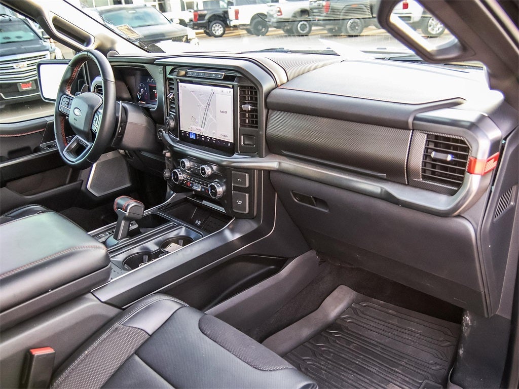 Recent Arrival! 2024 Agate Black Metallic Ford F-150 Raptor 4WD 10-Speed Automatic 3.5L V6 EcoBoost This Ford F-150 has many features and is well equipped including, Lifetime Engine Guarantee, Lifetime Oil Changes, Accident Free Carfax, Bluetooth®, Heated Mirrors, Heated / Cooled Seats, Keyless Entry, Rear Backup Camera, Rear Backup Sensors, Remote Start, Tow Package, All Wheel Drive / 4x4, USB, Bluetooth® Hands Free, 14 Speakers, 17 Cast Aluminum Wheels, 4-Wheel Disc Brakes, ABS brakes, Adaptive suspension, Adjustable pedals, Air Conditioning, Alloy wheels, AM/FM radio: SiriusXM with 360L, Auto High-beam Headlights, Auto tilt-away steering wheel, Auto-dimming door mirrors, Auto-dimming Rear-View mirror, Automatic temperature control, Brake assist, Bumpers: body-color, Compass, Delay-off headlights, Driver door bin, Driver vanity mirror, Dual front impact airbags, Dual front side impact airbags, Electronic Locking w/4.10 Axle Ratio, Electronic Stability Control, Emergency communication system: SYNC 4 911 Assist, Equipment Group 801A Standard, Exposed Wheel Lock Kit, First Aid Kit w/Ford Logo, Front anti-roll bar, Front Bucket Seats, Front Center Armrest, Front dual zone A/C, Front fog lights, Front reading lights, Front wheel independent suspension, Fully automatic headlights, Garage door transmitter, Hard Folding Tonneau Pickup Box Cover, Heads-Up Display, Heated door mirrors, Heated front seats, Heated rear seats, Heated steering wheel, Illuminated entry, Lane Departure Warning System, Leather Trim Seats, Low tire pressure warning, Memory seat, Navigation system: Connected Navigation, Occupant sensing airbag, Outside temperature display, Overhead airbag, Overhead console, Panic alarm, Passenger door bin, Passenger vanity mirror, Pedal memory, Power door mirrors, Power driver seat, Power passenger seat, Power steering, Power windows, Radio data system, Radio: B&O Unleashed Sound System by Bang & Olufsen, Rain sensing wipers, Rear reading lights, Rear step bumper, Rear window defroster, Remote keyless entry, Security system, Speed control, Speed-sensing steering, Split folding rear seat, Steering wheel memory, Steering wheel mounted audio controls, SYNC 4 w/Enhanced Voice Recognition, Tachometer, Telescoping steering wheel, Tilt steering wheel, Traction control, Trip computer, Turn signal indicator mirrors, Twin Panel Moonroof, Variably intermittent wipers, Ventilated front seats.