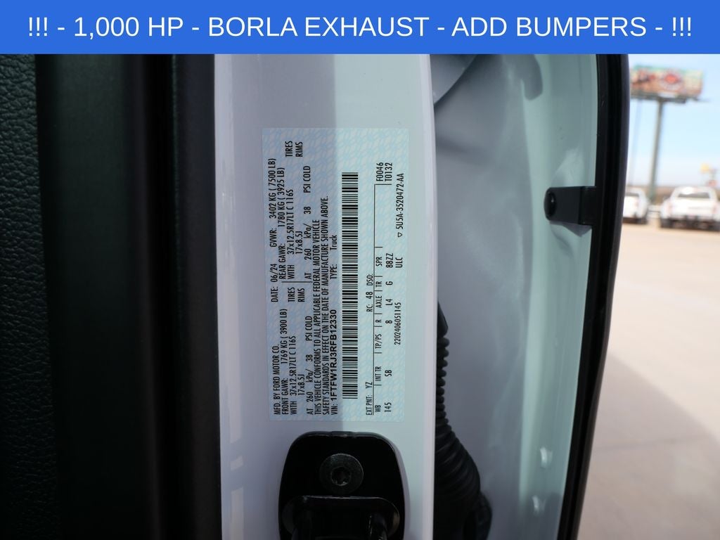 2024 Oxford White Ford F-150 Raptor 4WD 5.2L V8 This Ford F-150 has many features and is well equipped including, Leather Seats, Heated and Cooled Seats, Heated Seats, Lane Keeping Assist, Navigation System, Adaptive Headlights, Touchscreen Controls, Backup Camera, Keyless Access with Push Button Start, Automatic Headlights, Apple CarPlay, Android Auto, Voice Recognition, Bluetooth® Hands-Free, Wi-Fi Hotspot, Lifetime Engine Guarantee, Lifetime Oil Changes, Non-Smoker, Keyless Entry, Navigation/GPS, Power Sunroof / Moonroof, Remote Start, SIRIUS/XM SATELLITE RADIO, 4WD, 14 Speakers, 17 Cast Aluminum Wheels, 4-Wheel Disc Brakes, ABS brakes, Adaptive suspension, Adjustable pedals, Air Conditioning, Alloy wheels, AM/FM radio: SiriusXM with 360L, Auto High-beam Headlights, Auto tilt-away steering wheel, Auto-dimming door mirrors, Auto-dimming Rear-View mirror, Automatic temperature control, Brake assist, Bumpers: body-color, Code Orange Stitching Doors & Instrument Panel, Code Orange Tow Hooks, Compass, Delay-off headlights, Driver door bin, Driver vanity mirror, Dual front impact airbags, Dual front side impact airbags, Dual Valve Shocks, Electronic Locking w/4.10 Axle Ratio, Electronic Stability Control, Emergency communication system: SYNC 4 911 Assist, Equipment Group 803A Raptor R, Front anti-roll bar, Front Bucket Seats, Front Center Armrest, Front dual zone A/C, Front fog lights, Front reading lights, Front wheel independent suspension, Fully automatic headlights, Garage door transmitter, Heads-Up Display, Heated door mirrors, Heated front seats, Heated rear seats, Heated steering wheel, Illuminated entry, Interior Code Orange Raptor R Badging, Lane Departure Warning System, Leather Trim Seats, Low tire pressure warning, Memory seat, Modular Front Bumper, Navigation system: Connected Navigation, Occupant sensing airbag, Outside temperature display, Overhead airbag, Overhead console, Panic alarm, Passenger door bin, Passenger vanity mirror, Pedal memory, Power door mirrors, Power driver seat, Power passenger seat, Power steering, Power windows, Radio data system, Radio: B&O Unleashed Sound System by Bang & Olufsen, Rain sensing wipers, Raptor R Badge Tailgate Applique, Raptor R Exterior Graphics, Raptor R Exterior Theme, Raptor R Interior Theme, Raptor R Unique Grille, Raptor R Unique Hood Vent w/R Badge, Rear reading lights, Rear step bumper, Rear window defroster, RECARO w/Code Orange Stitching Front Seats, Remote keyless entry, Removes 2KW Pro Power Onboard, Security system, Speed control, Speed-sensing steering, Split folding rear seat, Steering wheel memory, Steering wheel mounted audio controls, SYNC 4 w/Enhanced Voice Recognition, Tachometer, Telescoping steering wheel, Tilt steering wheel, Tough Bed Spray-In Bedliner, Traction control, Trip computer, Turn signal indicator mirrors, Twin Panel Moonroof, Unique Carbon Fiber Appliques, Variably intermittent wipers, Ventilated front seats, Wheels: Raptor R Unique 17 Forged Aluminum.