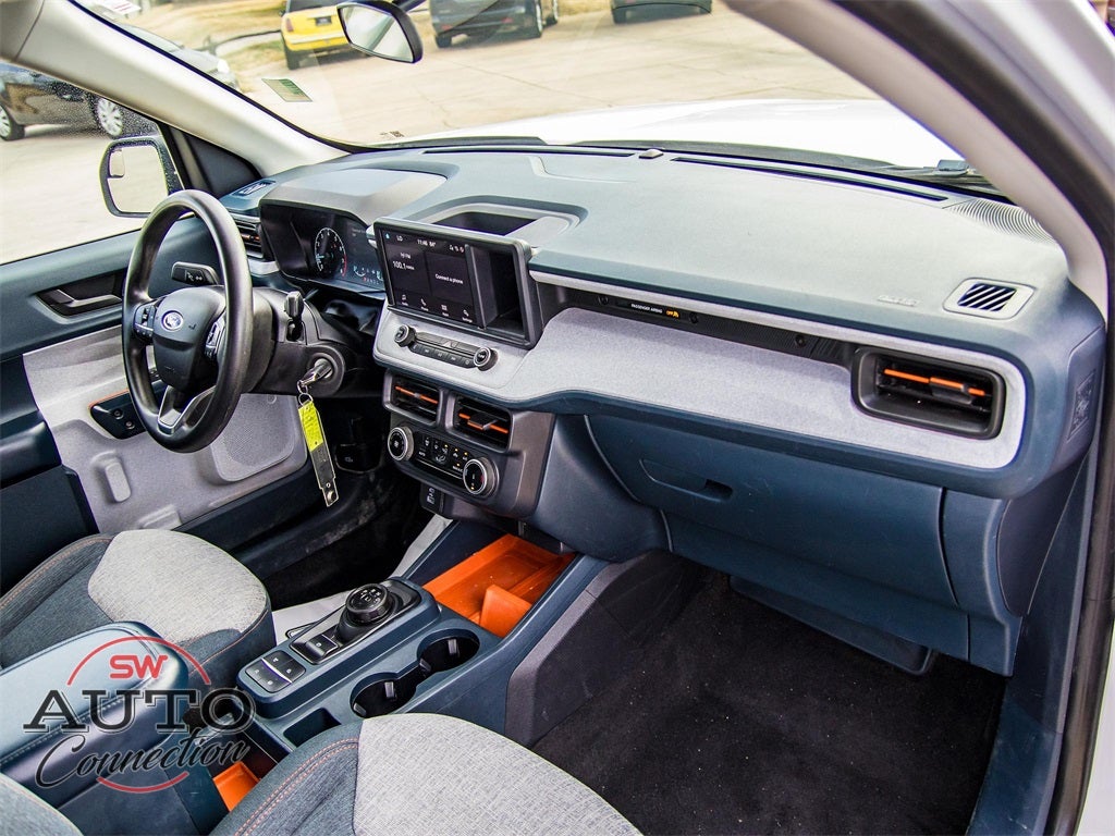 2024 Oxford White Ford Maverick XLT AWD EcoBoost 2.0L I4 GTDi DOHC Turbocharged VCT 8-Speed Automatic This Ford Maverick has many features and is well equipped including, 3.63 Axle Ratio, 4-Wheel Disc Brakes, 6 Speakers, ABS brakes, Air Conditioning, AM/FM radio, Auto High-beam Headlights, Automatic temperature control, Brake assist, Bumpers: body-color, Compass, Delay-off headlights, Driver door bin, Driver vanity mirror, Dual front impact airbags, Dual front side impact airbags, Electronic Stability Control, Equipment Group 300A Standard, Exterior Parking Camera Rear, Four wheel independent suspension, Front anti-roll bar, Front Bucket Seats, Front Center Armrest, Front reading lights, Fully automatic headlights, Illuminated entry, Knee airbag, Low tire pressure warning, Occupant sensing airbag, Outside temperature display, Overhead airbag, Overhead console, Panic alarm, Passenger door bin, Passenger vanity mirror, Power door mirrors, Radio: AM/FM Stereo w/6 Speakers, Rear anti-roll bar, Rear seat center armrest, Rear step bumper, Security system, Speed control, Speed-sensing steering, Tachometer, Telescoping steering wheel, Tilt steering wheel, Traction control, Trip computer, Unique Cloth Front Bucket Seats, Wheels: 17 Carbonized Gray Painted Aluminum.