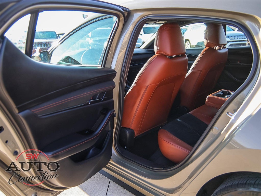 2024 Zircon Sand Metallic Mazda Mazda3 2.5 Carbon Turbo AWD 2.5L I4 6-Speed Automatic This Mazda Mazda3 has many features and is well equipped including, 4-Wheel Disc Brakes, 8 Speakers, ABS brakes, Air Conditioning, Alloy wheels, AM/FM radio, Auto High-beam Headlights, Automatic temperature control, Brake assist, Bumpers: body-color, Compass, Delay-off headlights, Driver door bin, Driver vanity mirror, Dual front impact airbags, Dual front side impact airbags, Electronic Stability Control, Emergency communication system: Mazda Connected Services (3-year complimentary trial included), Exterior Parking Camera Rear, Front anti-roll bar, Front Bucket Seats, Front Center Armrest, Front dual zone A/C, Front reading lights, Front wheel independent suspension, Fully automatic headlights, Heated door mirrors, Heated Front Bucket Seats, Heated front seats, Illuminated entry, Knee airbag, Leather Shift Knob, Leather steering wheel, Leatherette Seat Trim, Low tire pressure warning, MAZDA CONNECT Infotainment System, Memory seat, Occupant sensing airbag, Outside temperature display, Overhead airbag, Overhead console, Panic alarm, Passenger door bin, Passenger vanity mirror, Power door mirrors, Power driver seat, Power moonroof, Power steering, Power windows, Radio: AM/FM/HD Audio System, Rain sensing wipers, Rear seat center armrest, Rear side impact airbag, Rear window defroster, Rear window wiper, Remote keyless entry, Speed control, Speed-sensing steering, Split folding rear seat, Spoiler, Steering wheel mounted audio controls, Tachometer, Telescoping steering wheel, Tilt steering wheel, Traction control, Trip computer, Turn signal indicator mirrors, Variably intermittent wipers, Wheels: 18 x 7J Aluminum Alloy.