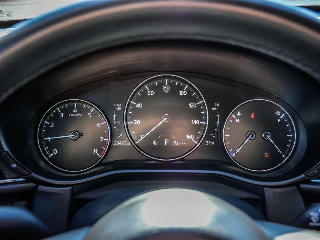 4-Wheel Disc Brakes, ABS brakes, Air Conditioning, Alloy wheels, AppLink/Apple CarPlay and Android Auto, Auto High-beam Headlights, Automatic temperature control, Brake assist, Bumpers: body-color, Compass, Delay-off headlights, Driver door bin, Driver vanity mirror, Dual front impact airbags, Dual front side impact airbags, Electronic Stability Control, Emergency communication system: Mazda Connected Services (3-year trial subscription included), Front anti-roll bar, Front Bucket Seats, Front Center Armrest, Front dual zone A/C, Front reading lights, Front wheel independent suspension, Fully automatic headlights, Heated door mirrors, Heated Front Bucket Seats, Heated front seats, High Wall All-Weather Floor Mats, Knee airbag, Leather Shift Knob, Leather steering wheel, Leatherette Seat Trim, Low tire pressure warning, MAZDA CONNECT Infotainment System, Memory seat, Occupant sensing airbag, Outside temperature display, Overhead airbag, Overhead console, Panic alarm, Passenger door bin, Passenger vanity mirror, Pet Ramp (DIO), Power door mirrors, Power driver seat, Power moonroof, Power steering, Radio: AM/FM Audio System, Rain sensing wipers, Rear seat center armrest, Rear side impact airbag, Rear View Camera, Rear window defroster, Rear window wiper, Remote keyless entry, Speed control, Speed-sensing steering, Split folding rear seat, Spoiler, Steering wheel mounted audio controls, Tachometer, Telescoping steering wheel, Tilt steering wheel, Traction control, Trip computer, Turn signal indicator mirrors, Variably intermittent wipers, Wheels: 18 x 7J Aluminum Alloy.
