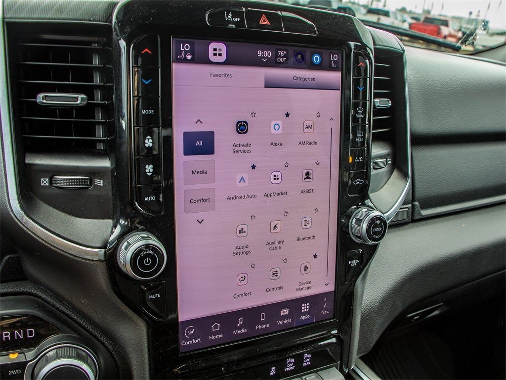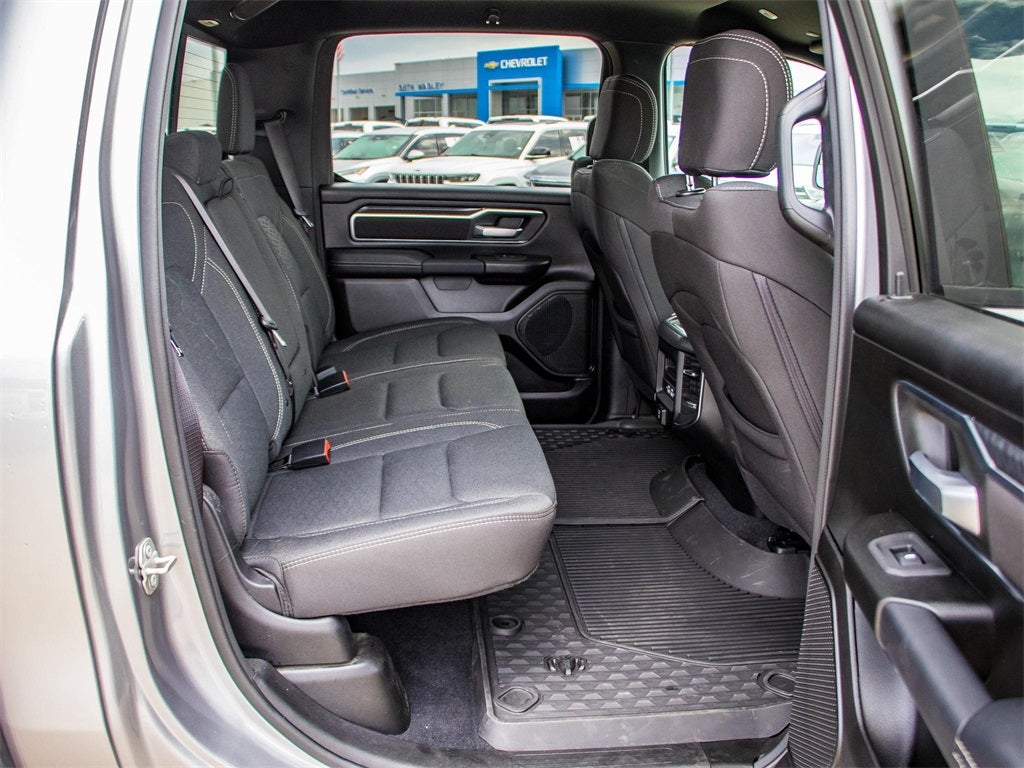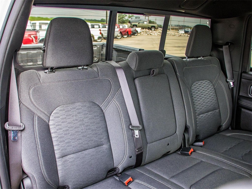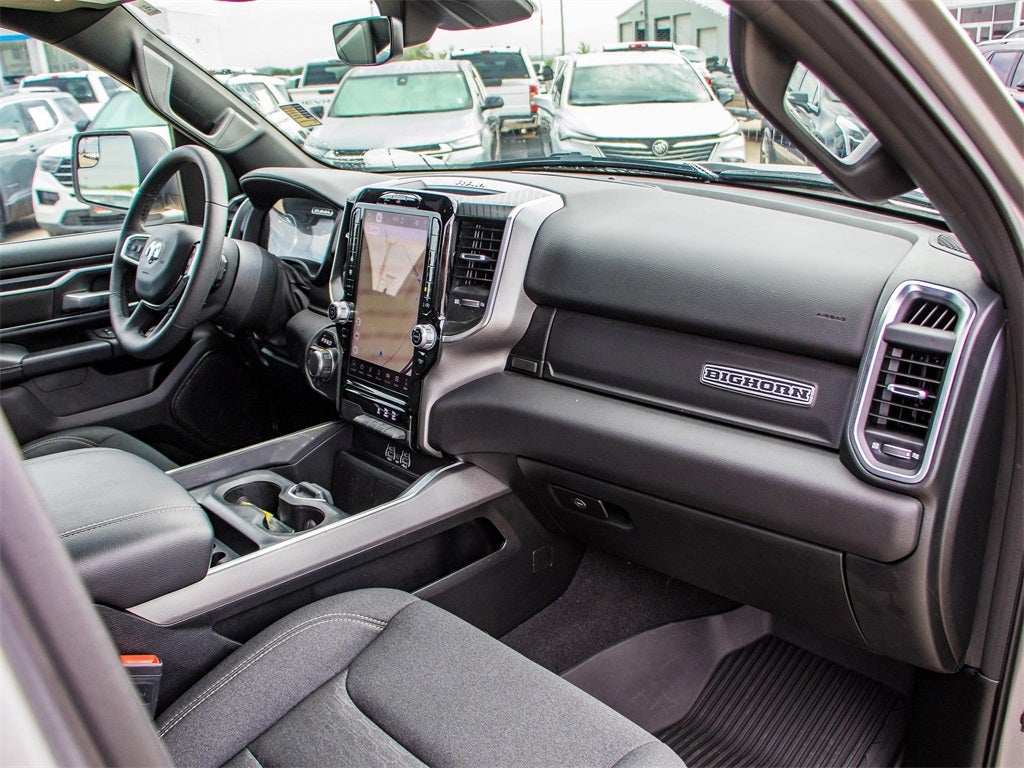 2025 Billet Silver Metallic Clearcoat Ram 1500 Big Horn 4WD 8-Speed Automatic 3.0L I6 This Ram 1500 has many features and is well equipped including, Lifetime Engine Guarantee, Lifetime Oil Changes, Accident Free Carfax, Bluetooth®, Keyless Entry, Navigation / GPS, Rear Backup Camera, Rear Backup Sensors, **SIRIUS/XM SATELLITE RADIO**, Tow Package, All Wheel Drive / 4x4, USB, Bluetooth® Hands Free, 115V Auxiliary Power Outlet, 115V Auxiliary Rear Power Outlet, 12 Touchscreen Display, 2nd Row In Floor Storage Bins, 3 Rear Seat Head Restraints, 3.55 Rear Axle Ratio, 4 Way Front Headrests, 4-Wheel Disc Brakes, 400W Inverter, 4G LTE Wi-Fi Hot Spot, 6 Speakers, 9 Amplified Speakers w/Subwoofer, ABS brakes, Air Conditioning, Air Conditioning ATC w/Dual Zone Control, AM/FM radio, Anti-Spin Differential Rear Axle, Apple CarPlay, Apple CarPlay/Android Auto, Auto High-beam Headlights, Auto Power-Folding Mirrors, Auto-Dimming Exterior Driver Mirror, Auto-Dimming Rear-View Mirror, Big Horn Level 2 Equipment Group, Black Exterior Mirrors, Black Interior Accents, Black Premium Power Mirrors, Body Color Door Handles, Body Color Front Bumper, Body Color Rear Bumper w/Step Pads, Body Color Tailgate Handle, Brake assist, Bucket Seats, Bumpers: chrome, Cloth Bench Seat, Cluster 7.0 TFT Color Display, Compass, Configurable Drive Mode, Connected Travel & Traffic Services, Connectivity - US/Canada, Convex Wide-Angle Exterior Mirror Insert, Delay-off headlights, Deluxe Cloth Bucket Seats, Driver door bin, Dual front impact airbags, Dual front side impact airbags, Electronic Stability Control, Exterior Mirrors Courtesy Lamps, Exterior Mirrors w/Heating Element, Exterior Mirrors w/Supplemental Signals, Front anti-roll bar, Front Center Armrest w/Storage, Front fog lights, Front reading lights, Front Seat Back Map Pockets, Front wheel independent suspension, Full Length Floor Console, Fully automatic headlights, Glove Box Lamp, Google Android Auto, GPS Antenna Input, GPS Navigation, Grille Surround 1 Body Color Texture 1 Black, HD Radio, Heated door mirrors, Heated Front Seats, Heated Steering Wheel, Illuminated entry, Integrated Voice Command w/Bluetooth®, Leather Wrapped Steering Wheel, LED Dome Lamp w/On/Off Switch, LED Footwell Lighting, Low tire pressure warning, Manual Adjust 4-Way Front Passenger Seat, Manual Folding Exterior Mirrors, Media Hub w/2 Charge Only USBs, MOPAR Front & Rear Rubber Floor Mats, Occupant sensing airbag, Outside temperature display, Overhead airbag, Overhead console, Overhead LED Lamps, Panic alarm, ParkView Rear Back-Up Camera, Passenger door bin, Passenger vanity mirror, Power 2-Way Driver Lumbar Adjust, Power Adjust 8-Way Driver Seat, Power Adjustable Pedals, Power door mirrors, Power steering, Power windows, Premium Overhead Console, Quick Order Package 21Z Big Horn, Radio data system, Radio: Uconnect 5 Nav w/12.0 Display, Radio: Uconnect 5 W w/8.4 Display, RAM Grille Badge - Chrome, Rear 60/40 Folding Seat, Rear anti-roll bar, Rear Center Armrest, Rear Power Sliding Window, Rear seat center armrest, Rear step bumper, Rear Window Defroster, Remote keyless entry, Remote Tailgate Release, Security Alarm, SiriusXM w/360L, Speed control, Split folding rear seat, Sport Appearance Package, Steering Wheel Mounted Audio Controls, Sun Visors w/Illuminated Vanity Mirrors, Supplier Part Tracking (J-1), Tachometer, Telescoping steering wheel, Tilt steering wheel, Traction control, Trip computer, Universal Garage Door Opener, USB Host Flip, Variably intermittent wipers, Voltmeter, Wheels: 20 x 9 Aluminum Chrome Clad (WRK).