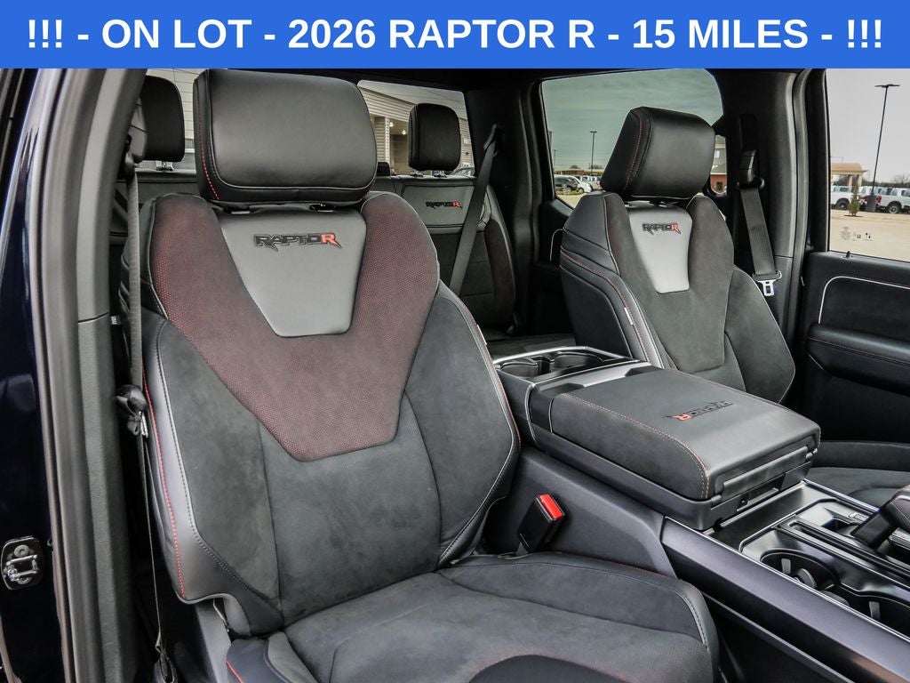2026 Blue Metallic Ford F-150 Raptor 4WD 5.2L V8 This Ford F-150 has many features and is well equipped including, Leather Seats, Heated and Cooled Seats, Heated Seats, Blind-Spot Monitors, Lane Keeping Assist, Navigation System, Touchscreen Controls, Heads-Up Display, Backup Camera, Keyless Access with Push Button Start, Automatic Headlights, Apple CarPlay, Android Auto, Voice Recognition, Bluetooth® Hands-Free, Wi-Fi Hotspot, Lifetime Engine Guarantee, Lifetime Oil Changes, Non-Smoker, Keyless Entry, Power Sunroof / Moonroof, Remote Start, Tow Package, 4WD, 14 Speakers, 17 Cast Aluminum Wheels, 4-Wheel Disc Brakes, ABS brakes, Adjustable pedals, Air Conditioning, Alloy wheels, AM/FM radio: SiriusXM with 360L, Auto High-beam Headlights, Auto tilt-away steering wheel, Auto-dimming door mirrors, Auto-dimming Rear-View mirror, Automatic temperature control, Brake assist, Bumpers: body-color, Code Orange Front Tow Hooks, Code Orange Stitching Doors and Instrument Panel, Compass, Delay-off headlights, Driver door bin, Driver vanity mirror, Driver's Side SecuriCode Keyless-Entry Keypad, Dual front impact airbags, Dual front side impact airbags, Dual Valve Shocks, Electronic Locking with 4.10 Axle Ratio, Electronic Stability Control, Emergency communication system: SYNC 4 911 Assist, Equipment Group 803A Raptor R, Ford Connectivity Package (1-Year Included), Ford Connectivity Package (one-Time Purchase - 7 Years), Front anti-roll bar, Front Bucket Seats, Front Center Armrest, Front dual zone A/C, Front fog lights, Front License Plate Bracket, Front reading lights, Front wheel independent suspension, Fully automatic headlights, Garage door transmitter, Hard Folding Tonneau Pickup Box Cover, Heated door mirrors, Heated front seats, Heated rear seats, Heated steering wheel, Illuminated entry, Interior Code Orange Raptor R Badging, Internet access capable: 5G Modem - Ford Connectivity Package, Lane Departure Warning System, Leather steering wheel, Leather Trimmed Seats, Low tire pressure warning, Memory seat, Modular Front Bumper, Navigation system: Connected Navigation, Occupant sensing airbag, Outside temperature display, Overhead airbag, Overhead console, Panic alarm, Passenger door bin, Passenger vanity mirror, Pedal memory, Power door mirrors, Power driver seat, Power passenger seat, Power steering, Power windows, Radio data system, Radio: B&O Unleashed Sound System by Bang & Olufsen, Rain sensing wipers, Raptor R Badge Tailgate Applique, Raptor R Exterior Graphics, Raptor R Exterior Theme, Raptor R Interior Theme, Raptor R Unique Grille, Raptor R Unique Hood Vent with R Badge, Rear reading lights, Rear step bumper, Rear window defroster, RECARO with Code Orange Stitching Front Seats, Remote keyless entry, Removes 2KW Pro Power Onboard, Security system, SiriusXM with 360L (3-Year Plan), Speed control, Speed-sensing steering, Split folding rear seat, Steering wheel memory, Steering wheel mounted audio controls, SYNC 4 with Enhanced Voice Recognition, Tachometer, Telescoping steering wheel, Tilt steering wheel, Tough Bed Spray-in Bedliner, Traction control, Trip computer, Turn signal indicator mirrors, Twin Panel Moonroof, Unique Carbon Fiber Appliques, Upgraded Dual Exhaust, Variably intermittent wipers, Ventilated front seats, Wheels: Raptor R Unique 17 Forged Aluminum.